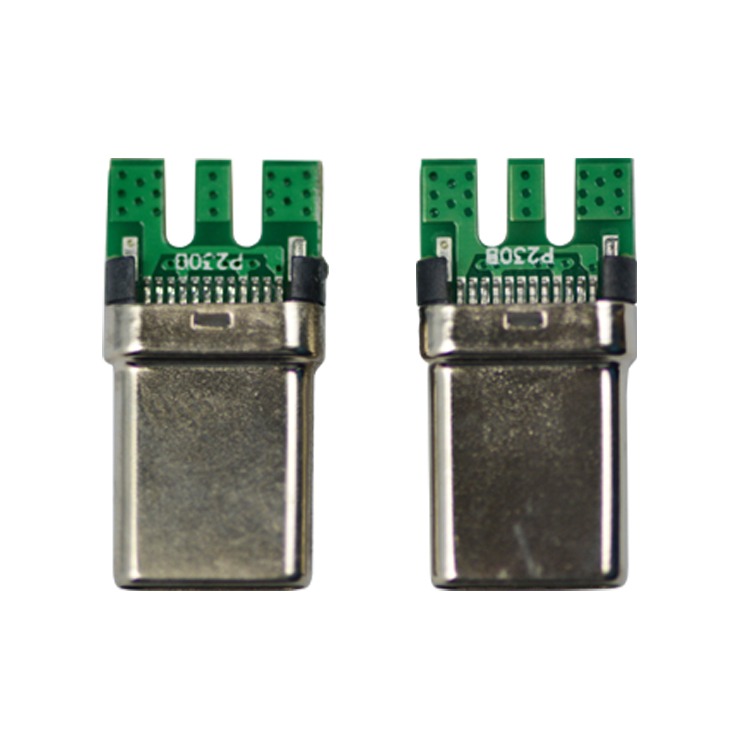 USB TYPE C 24PIN夹板式公头 拉伸镀亮镍 PCB板镂空U型